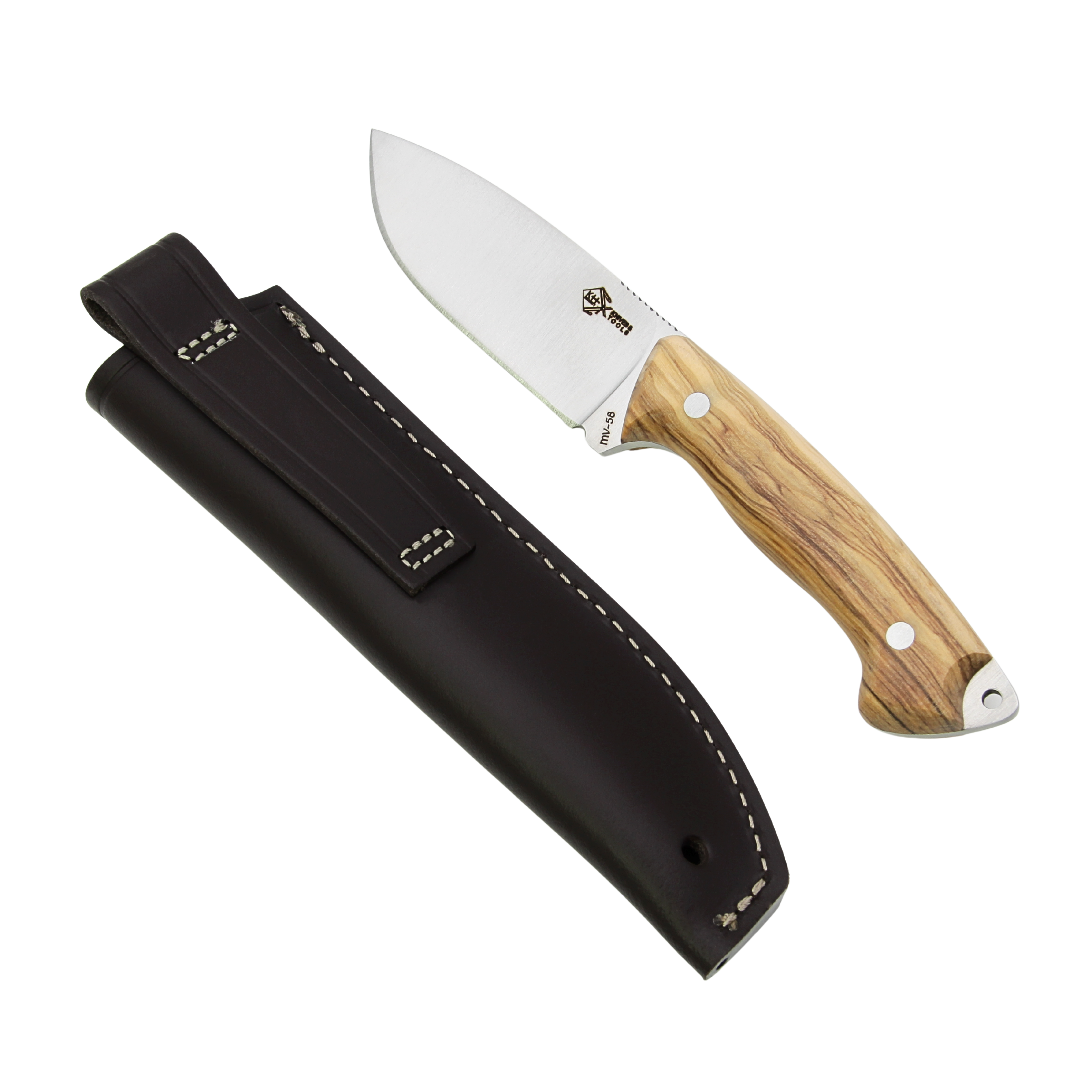 Dieses feststehende Messer ist aus Olivenholz gefertigt.
