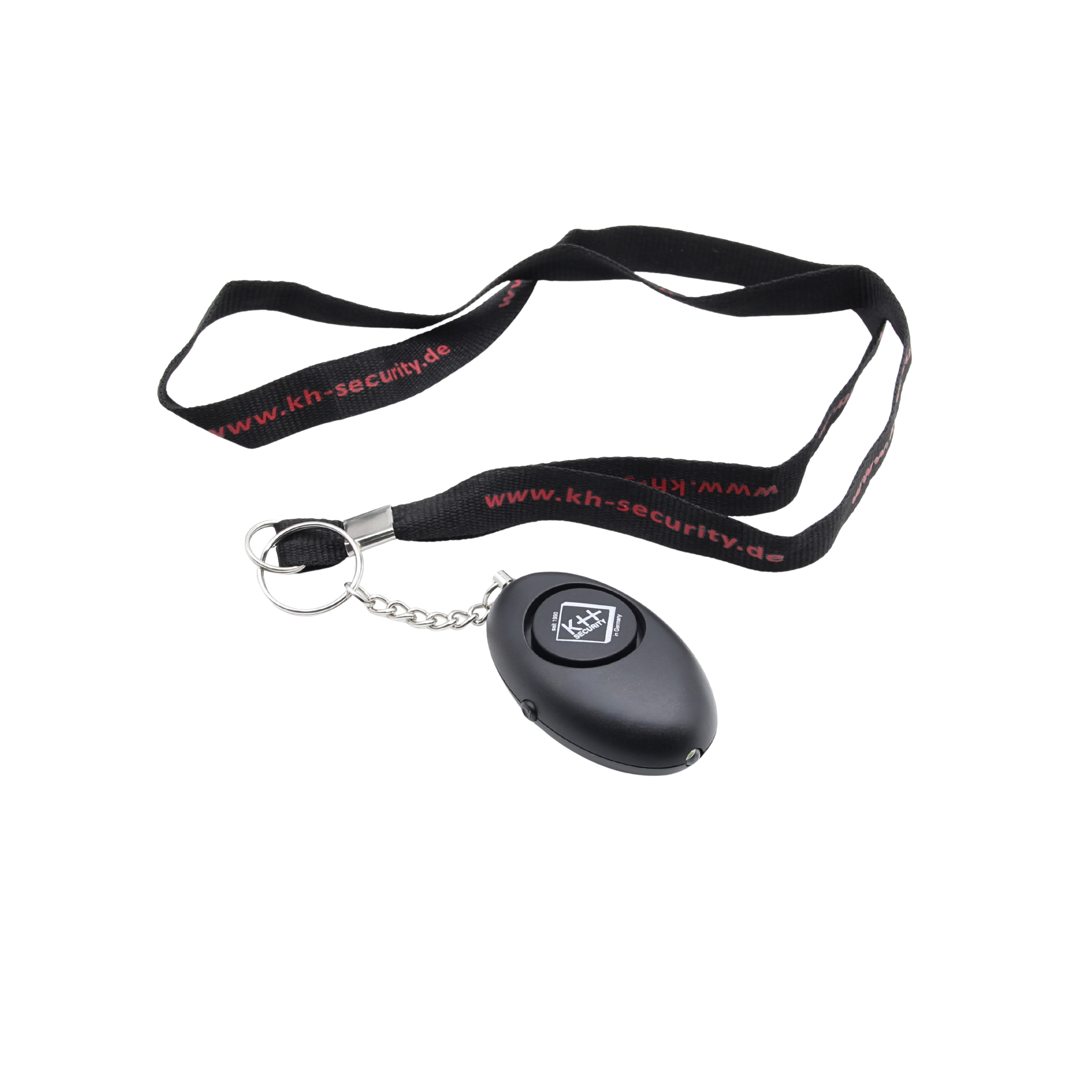 Durch das Umhängeband kann der kh-security Schlüsselalarm auch um den Hals getragen werden und eignet sich somit auch speziell für Kinder und Senioren.