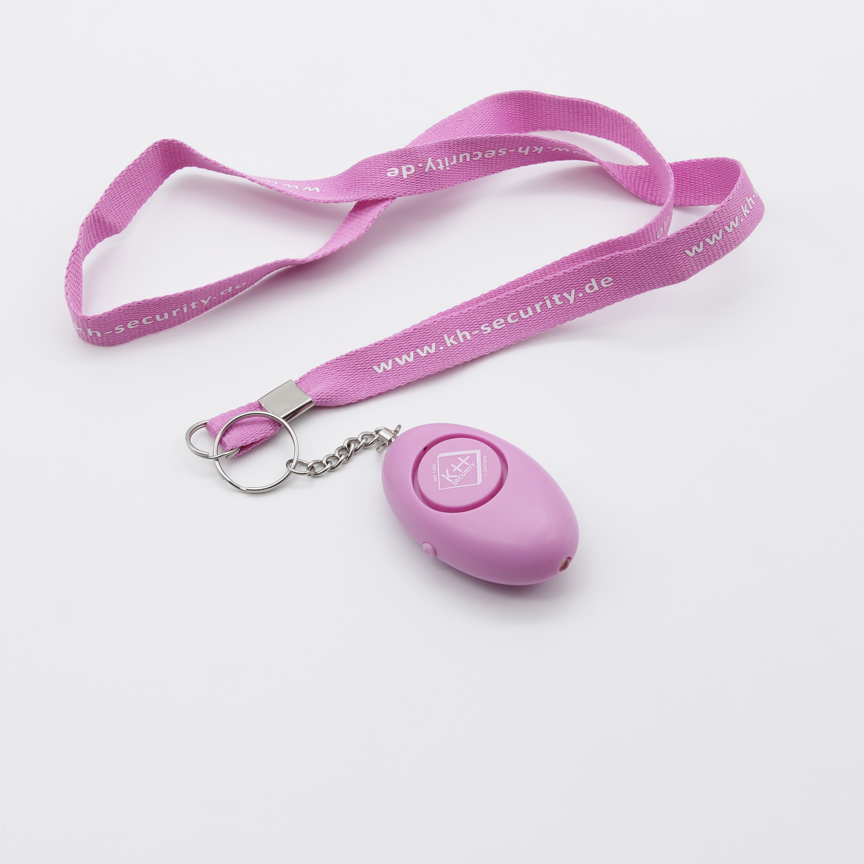 Durch das Umhängeband kann der kh-security Schlüsselalarm auch um den Hals getragen werden und eignet sich somit auch speziell für Kinder und Senioren.
