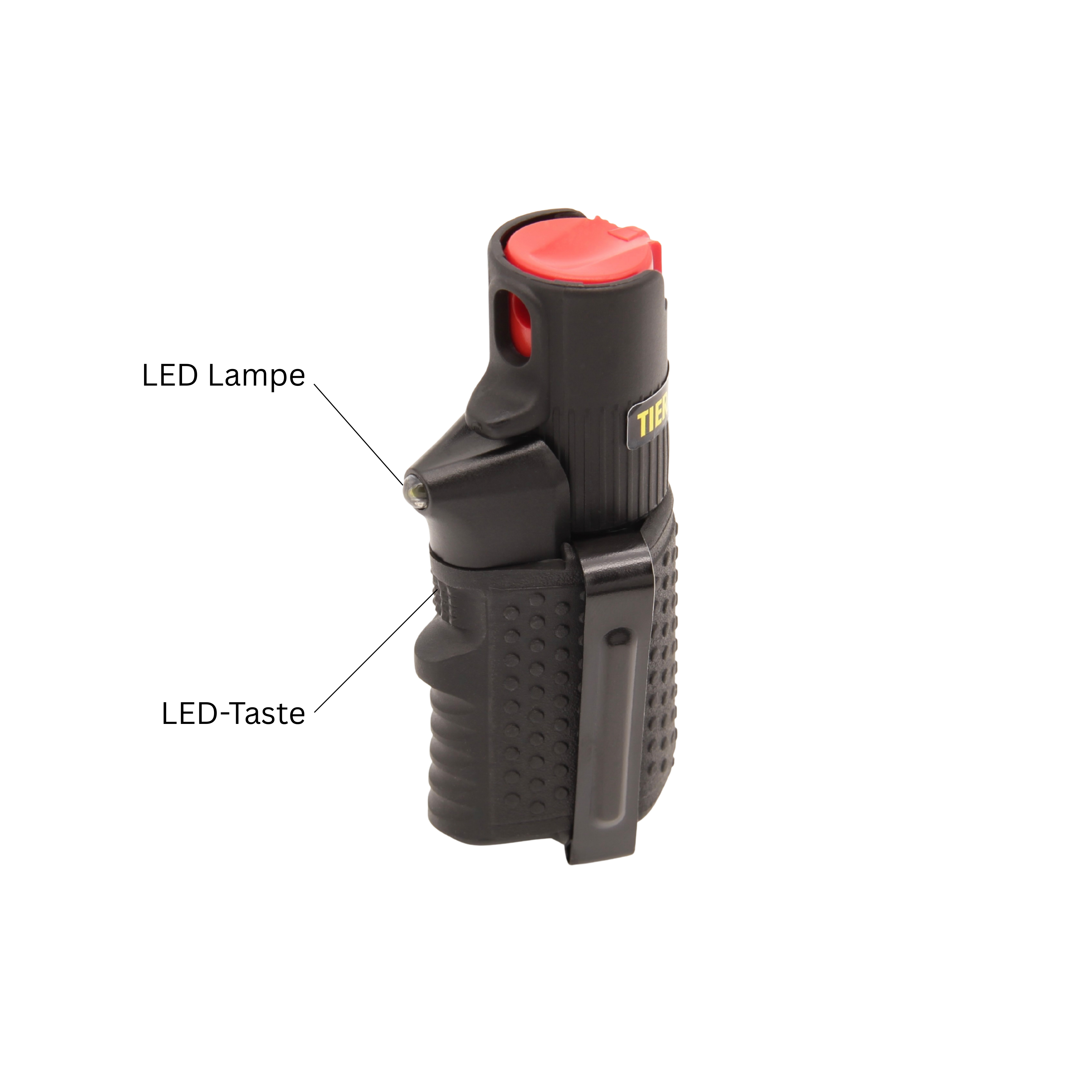 Produktinformationen "Pfefferspray Hurricane (15 ml) inkl. LED und Clip - schwarz"
