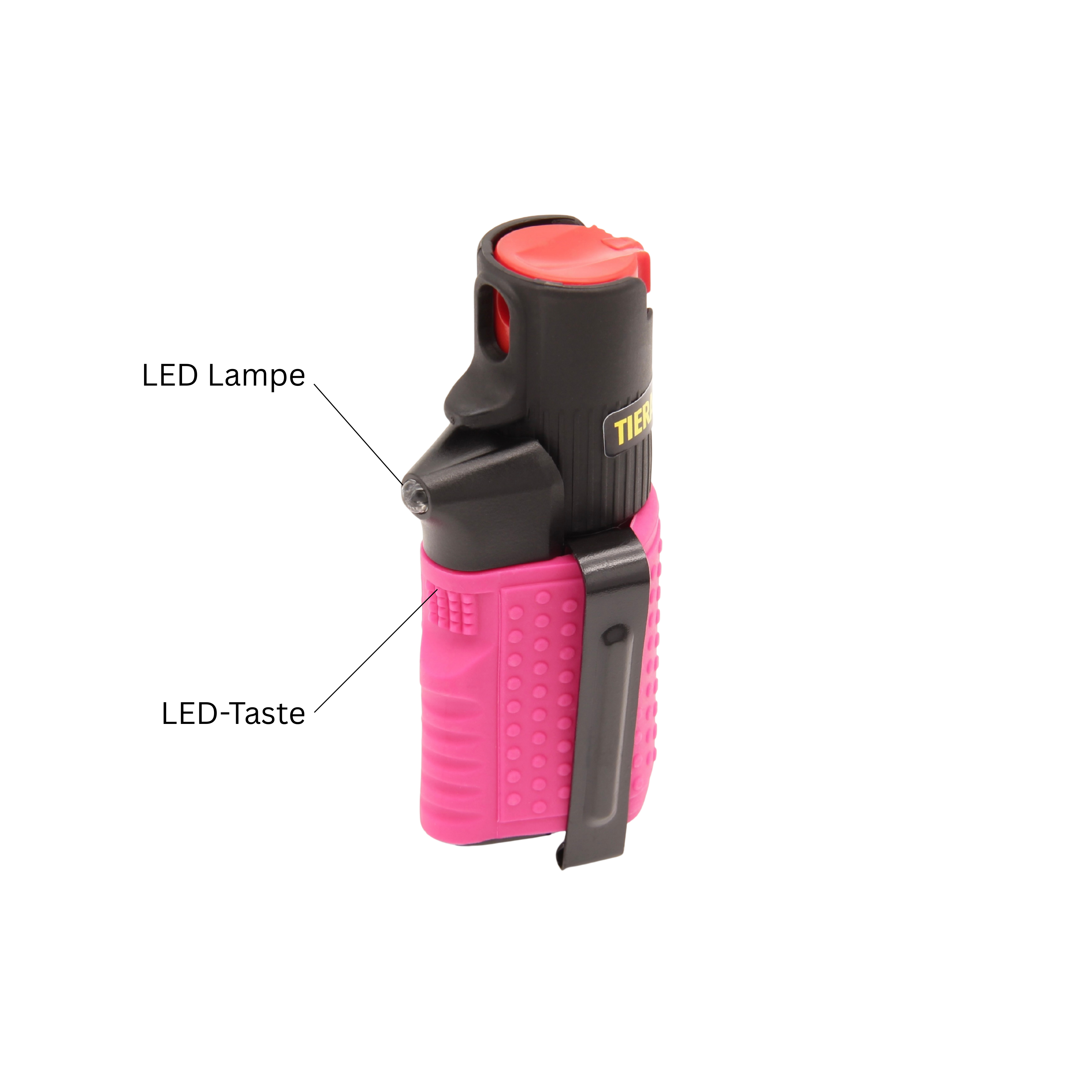 Produktinformationen "Pfefferspray Hurricane (15 ml) inkl. LED und Clip - pink/schwarz"