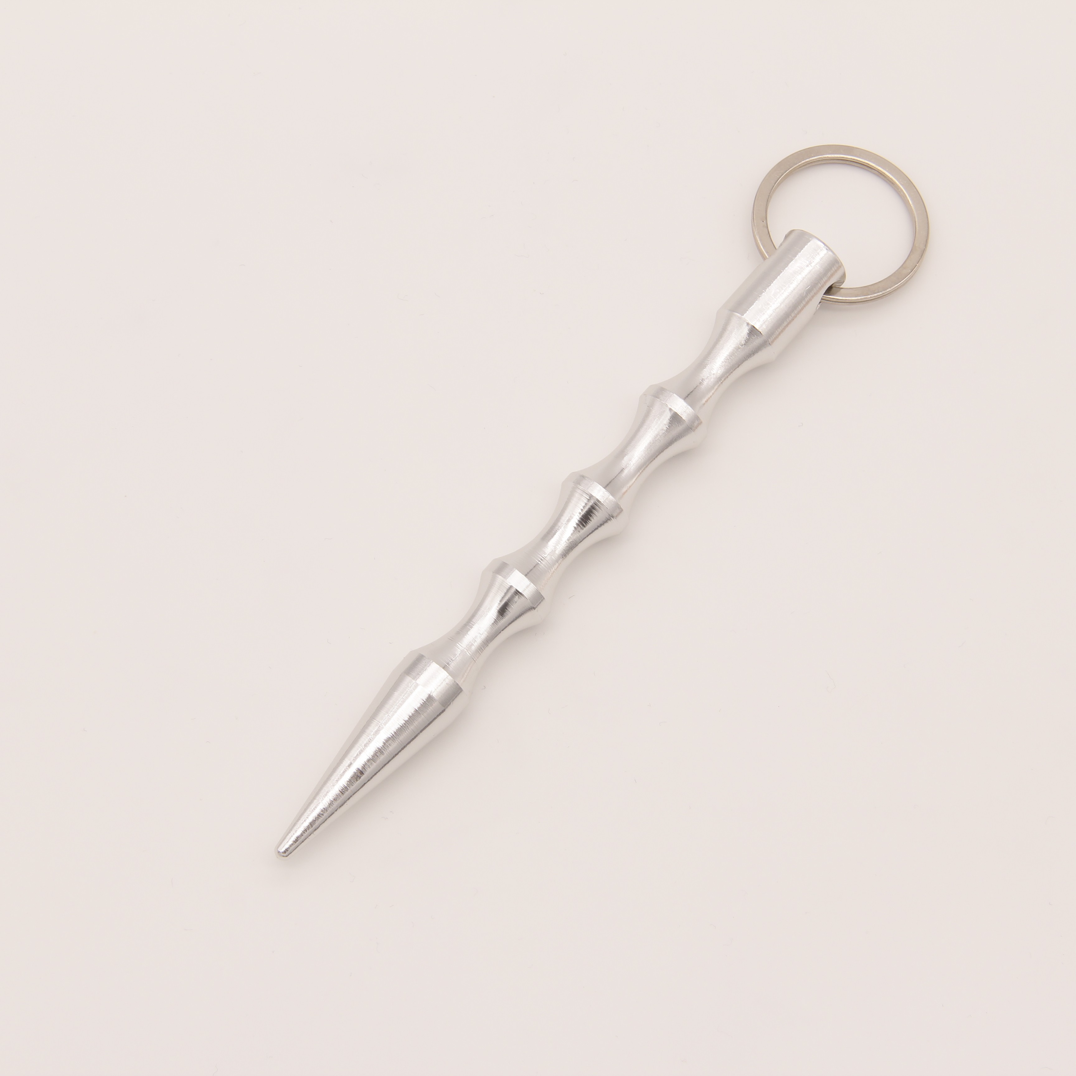 Dieser Kubotan aus Aluminium überzeugt durch seine stabile Verarbeitung und die ergonomisch strukturierte Form. Das leichte, widerstandsfähige Metall sorgt für hohe Langlebigkeit bei gleichzeitig kompakter Bauweise. Dank integriertem Schlüsselring lässt sich der Kubotan bequem am Schlüsselbund oder an Ausrüstung befestigen.